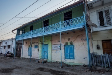 Rumah Indies dua lantai beratap limasan berpenutup genteng ini dirancang bersahaja. Fenestrasi pada lantai bawah terlihat bukan aslinya karena tidak sezaman dengan bangunan. Pada lantai atas masih terdapat jejak masa lalun, yaitu deretan tiga jendela. Balkon sepanjang bangunan merupakan konstruksi kayu dengan pagar langkan kayu pula. Balkon dan srotongnya dittopang oleh tiang besi tuang. Pada kedua ujung balkon terdapat parapet berkrepyak yang dijumpai pula pada bangunan sejenis di Kota Lama.